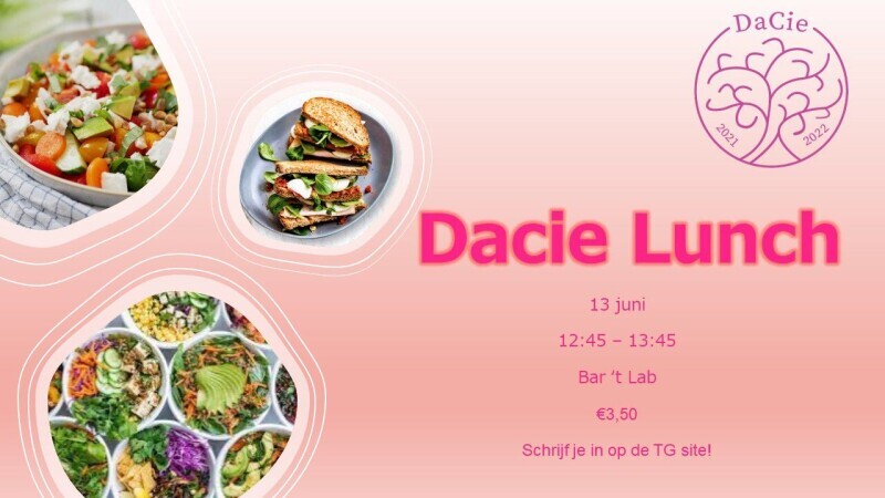 Omdat de hightea zo geslaagd was is het weer tijd voor een lekkere meiden activiteit! Dit keer zal het geen hightea zijn, maar een lekkere lunch! Kom tussen het studeren door op 13 juni gezellig met ons lunchen in Bar ‘t Lab! Het vindt plaats in de pauze van 12.45 tot 13.45. Voor slechts €3.50 zul je kunnen genieten van een heerlijke voorbereide lunch! Dus schrijf je vooral lekker in hier, want dit wil je natuurlijk niet missen!