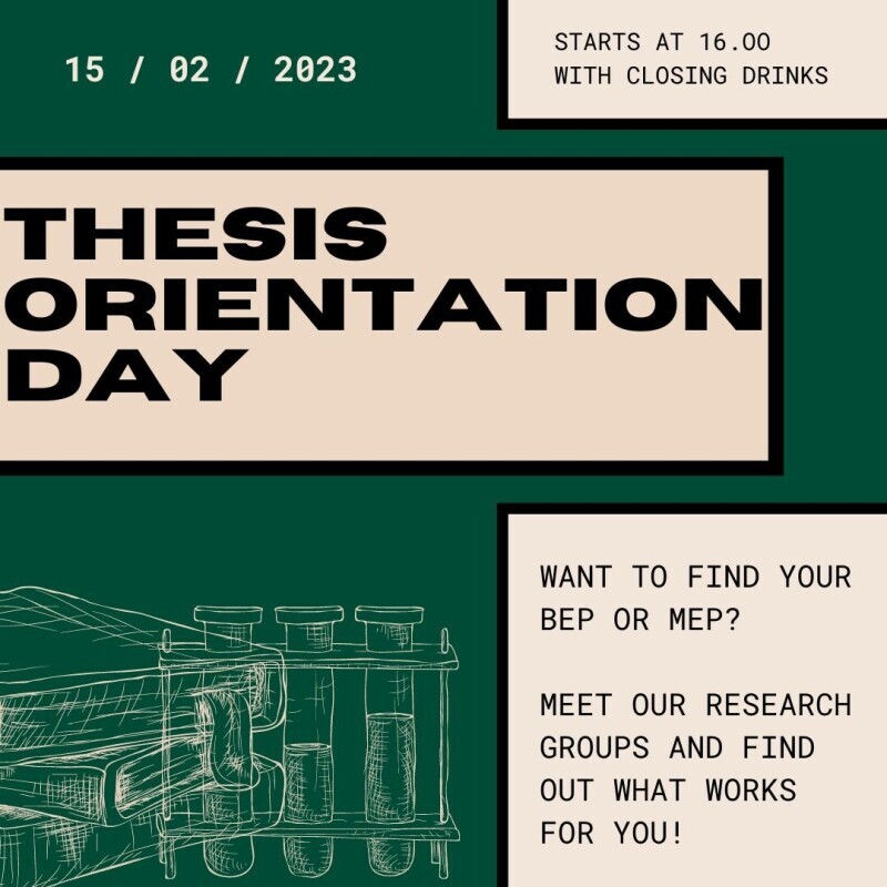 Not sure where you want to do your bachelor or master thesis? Come to the Thesis Orientation Day! This year, the Thesis Orientation Day will take place in the afternoon of the 15th of February. During the day, several research groups from the faculty will give a short presentation about what they do. After the presentations, there will be a poster market in the Atrium with some drinks and snacks. The day will be free and you can sign up at the TG website!
